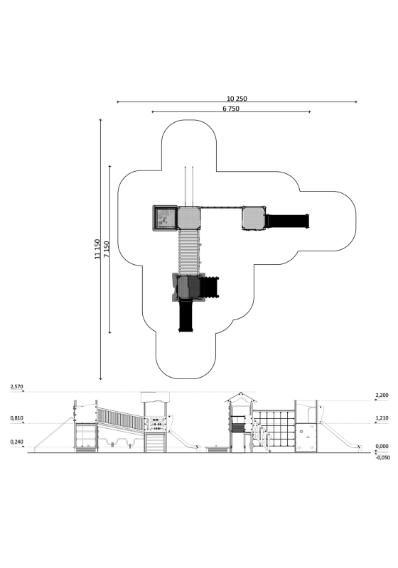 En lekställning som ger massor av lek och som utmanar barnen på flera olika sätt. Broar, klätterväggar, rep- och nätklättring, rutschkanor, tre olika plattformar som sammanlänkas till en enhet. Här kommer barnen definitivt att ha skoj och utmanas både i sin motorik och styrka.