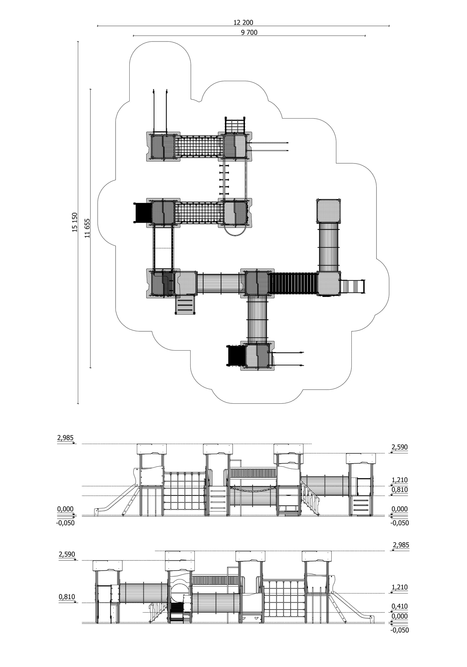 - 1.20 m hög rutsch med glidstänger i rostfritt stål