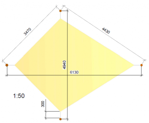 System med solsegel i HDPE 3 x 3 x 4 x 4 m.
