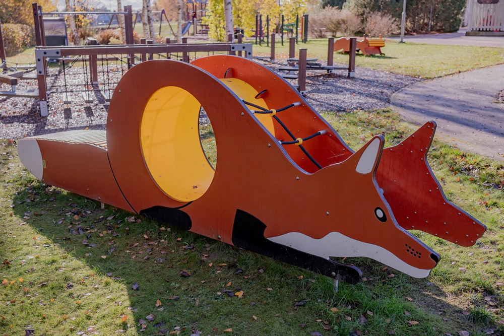 Rävens svansdel fungerar både som sittplats för vila och som en rolig balansutmaning för aktiva barn. 🦊✨