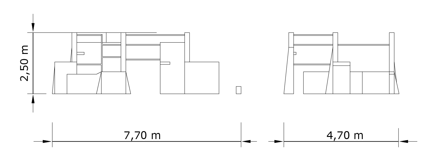 The wall elements of parkour structures are made of sustainable cross-laminated timber (CLT) to ensure high stability and durability despite constantly changing atmospheric humidity. A four-stage process has been employed to make the wood weatherproof.