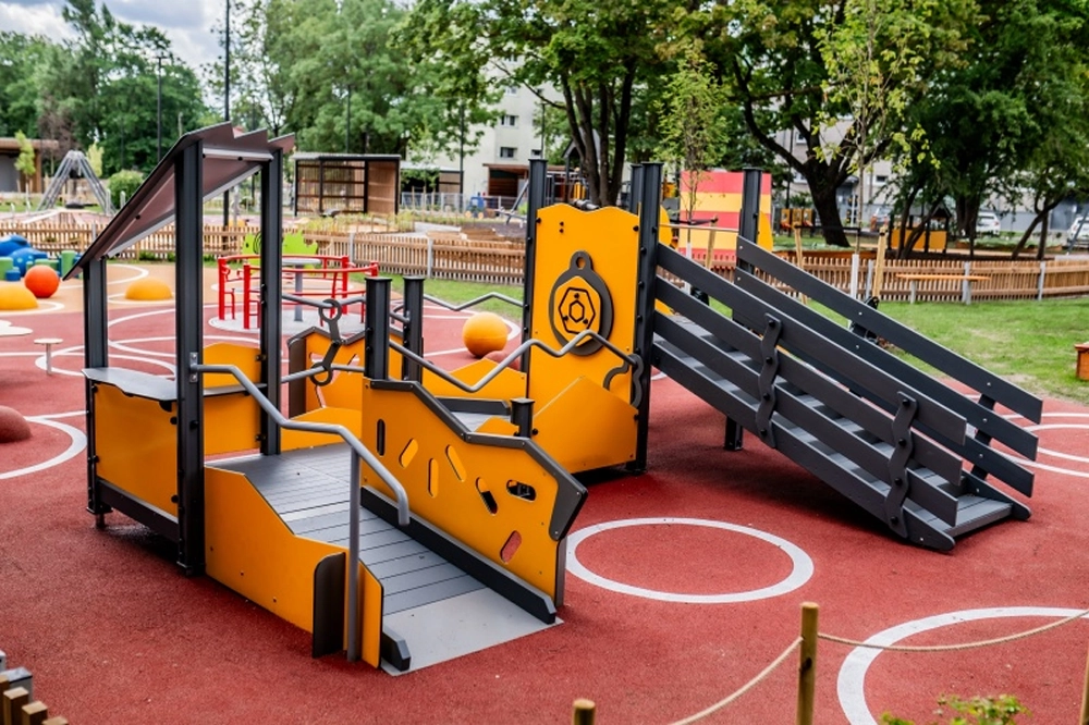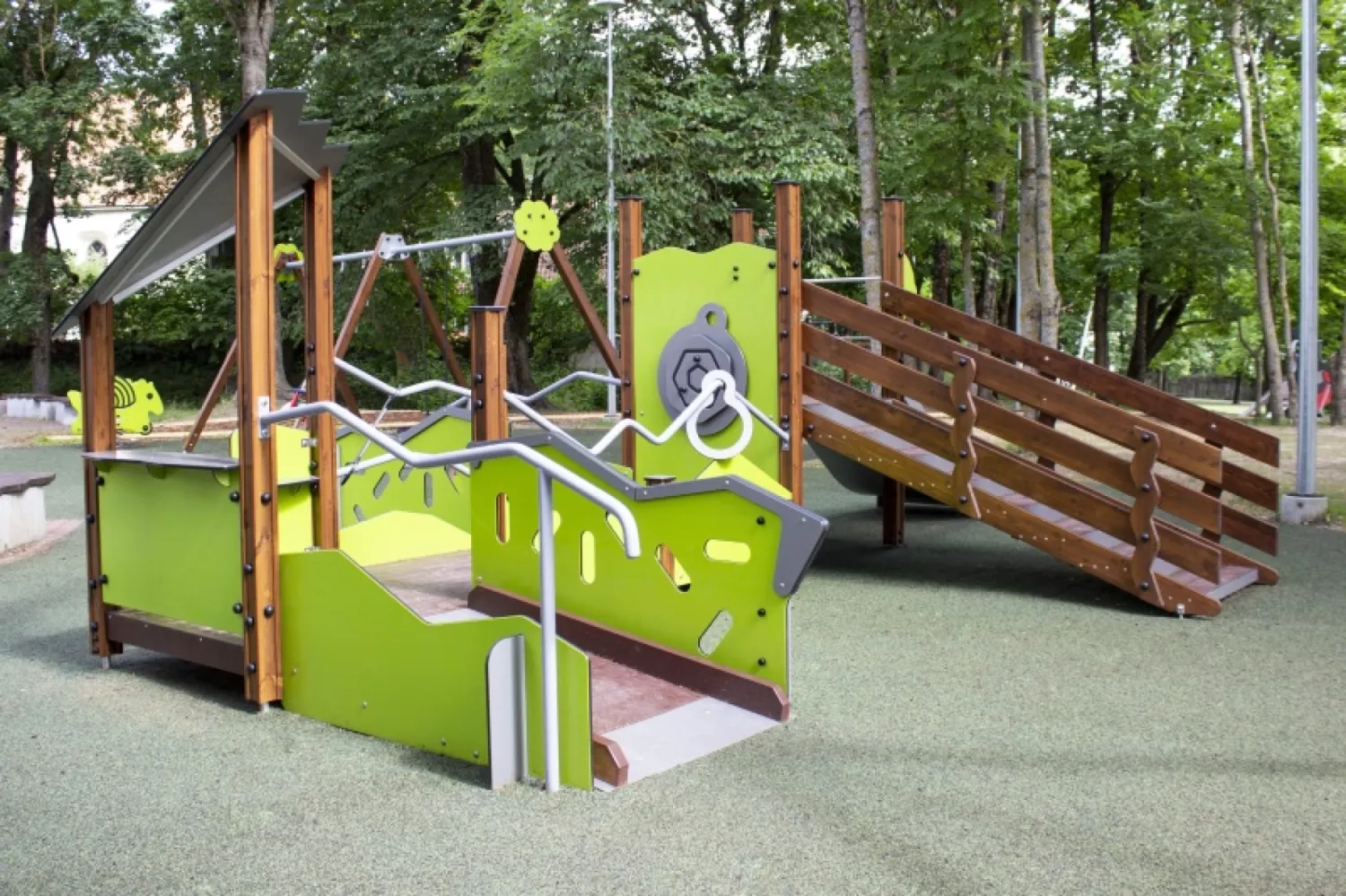 Vår Kombilek - tillgänglig och fri från hinder både för rullstolsburna och de allra minsta barnen som precis lärt sig att gå. Kombileken är framtagen i syfte för att ALLA barn ska kunna leka tillsammans.