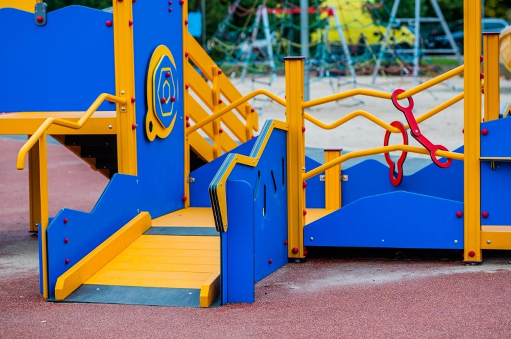 4. Färgkontraster. För barn med synnedsättningar är det hjälpande om trappor och ramper förses med kontrastfärger, vilket vår kombilek inkluderar.